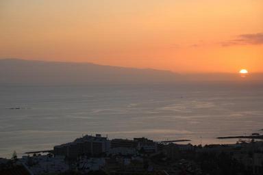Keywords: sunset dusk twilight tenerife in the background island gomera sky sea costa orange ocean horizon clouds beach