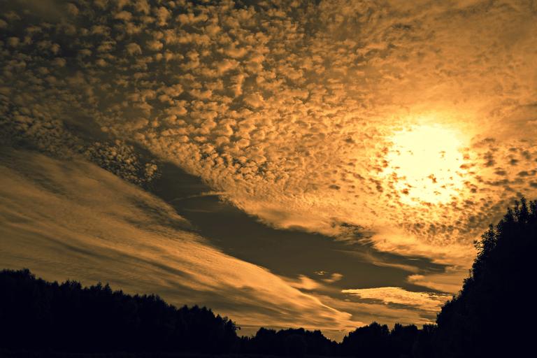 Keywords: sunset evening evening sky dusk yellow orange sunset sky clouds silhouette skyline trees skyline