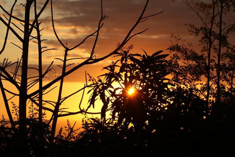 Keywords: sunset evening reunion island inflamed sun ocean sea sky side leaves holiday silhouette summer nature yellow orange light