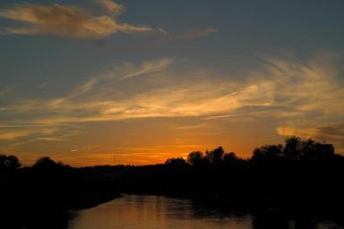 Keywords: sunset evening sky abendstimmung mood idyll clouds sky river danube water sun evening back light reflection orange