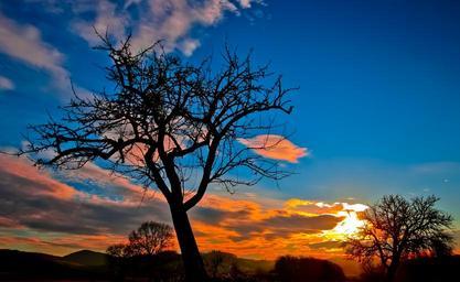Keywords: sunset evening sky afterglow clouds sky landscape nature shadows silhouette