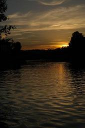 Keywords: sunset evening sky clouds sky river danube water sun evening back light reflection yellow