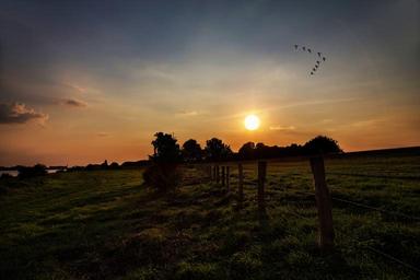 Keywords: sunset evening sky sky landscape mood back light meadow nature green hdr