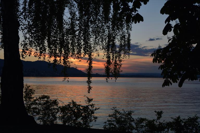 Keywords: sunset evening sun lake lake zurich water abendstimmung atmospheric trees