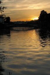 Keywords: sunset evening water danube ulm river stove bridge