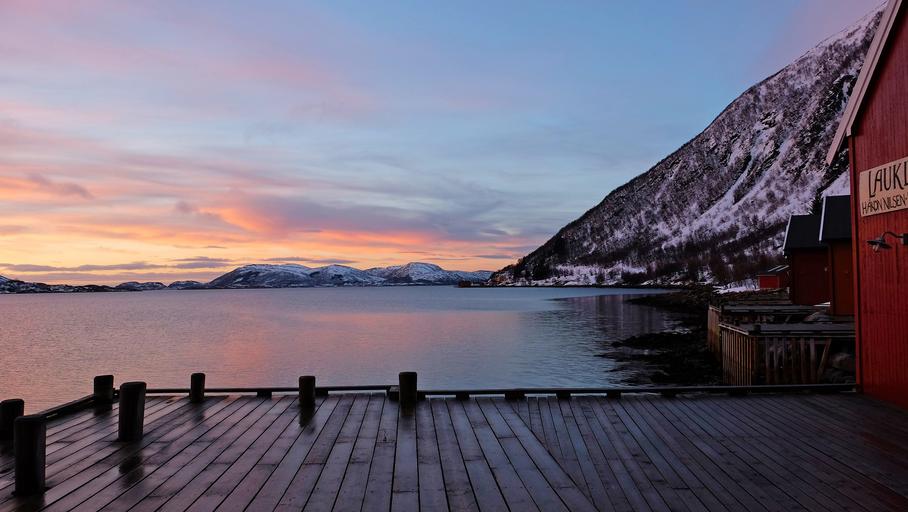 Keywords: sunset ever-changing orange red blue reflection amazing beautiful sea fjord snow mountain winter travel lauklines kystferie kvaloya kvaløysletta norway tromso scandinavia europe
