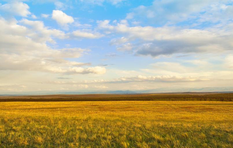 Keywords: sunset field agriculture space sky clouds nature landscape soil grass trees yellow summer heat