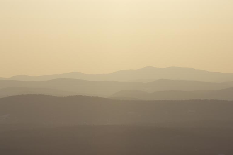 Keywords: sunset fog misty mountain range sky calm morning evening landscape nature mist summer outdoor