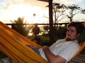Keywords: sunset hammock laid back man relax summer resort