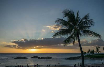 Keywords: sunset hawaii oahu sun rays palm tree sky beach rocks ocean hawaii beach summer travel vacation beach sunset people person nature sand tropical landscape holiday sunny outdoor colorful island evening water sea sun coast shore orange clouds