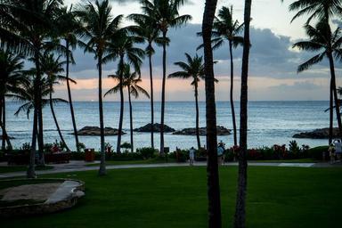 Keywords: sunset hawaii oahu palm trees beach ocean hawaii beach summer travel vacation beach sunset sea sunset beach tropical sky water island outdoor pacific rocks lagoon colorful scenic exotic