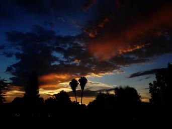 Keywords: sunset horizon clouds palm trees neighborhood heavens landscape illuminated sunset sky dusk color sunset background nature sky clouds sky view california central valley