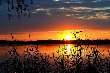 Keywords: sunset lake abendstimmung nature romance sun landscape atmospheric idyllic rest water reed mirroring