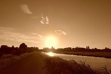 Keywords: sunset landscape evening dutch landscape holland dusk silhouette water sun sky pink sepia monochrome