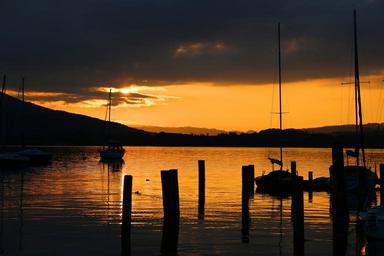 Keywords: sunset landscape nature evening sky clouds afterglow sky lake abendstimmung mountains twilight water summer sea boats beach holiday embers red mood coast light rest mirroring orange beautiful surf holidays sparkle last light