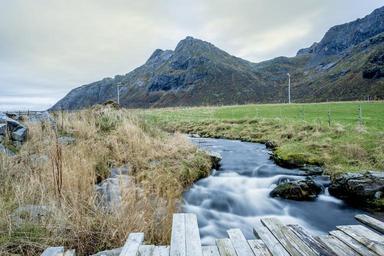 Keywords: sunset lofoten boats cabins sky refuge valley blue nature norway