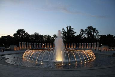 Keywords: sunset memorial wwii lighting landmark monument washington dc illuminated