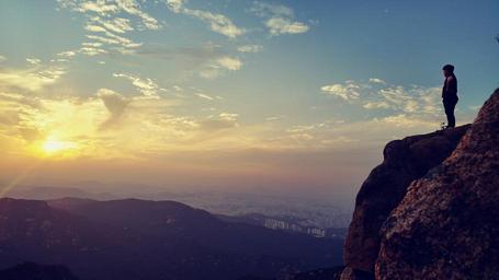Keywords: sunset mountain people hill edge a separate view sky