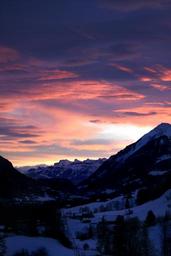 Keywords: sunset mountains afterglow evening sky abendstimmung bernese oberland sun sky clouds evening color orange pink purple violet beautiful unique gradient natural spectacle