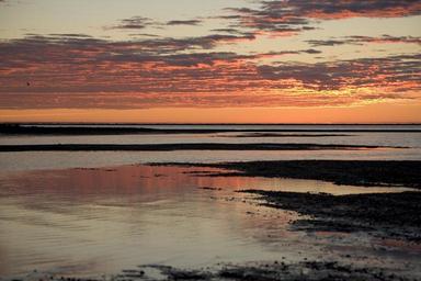 Keywords: sunset ocean horizon shore silhouettes clouds sky colorful dusk twilight evening sun coast seascape scenic outdoors water