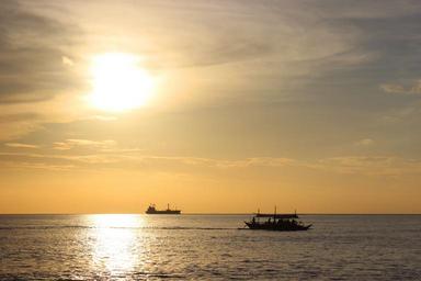 Keywords: sunset ocean reflection travel philippines bataan luzon boat bangka ship