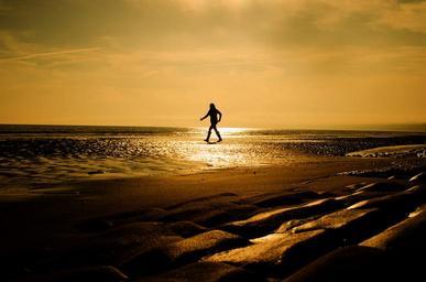 Keywords: sunset beach people woman walking relaxation yellow red sand freedom direction energy nature sun fresh exercise entertainment sports lifestyle