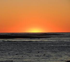 Keywords: sunset orange coast oregon sun landscape yellow horizon beach ocean