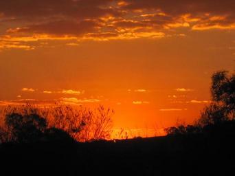 Keywords: sunset orange-gold vivid bright luminous clouds light glow trees sky