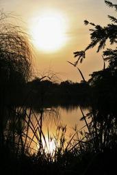 Keywords: sunset over pond pond water sunset sun reflection reeds trees