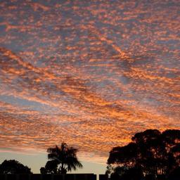 Keywords: sunset palm tree sky red silhouette sunny yellow dusk bright scenic nature sun cloud blue orange light sunlight outdoor horizon