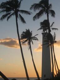 Keywords: sunset palms lighthouse hawaii maritime landscape coast clouds beach