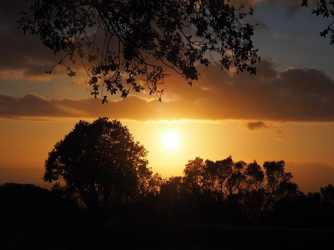 Keywords: sunset passage sun evening romantic romance clouds yellow bright sunlight evening hours trees forest sky