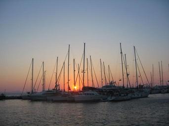 Keywords: sunset port evening boats mast