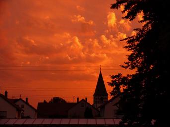 Keywords: sunset red sky clouds orange mood evening evening sky afterglow abendstimmung dusk beautiful nature atmosphere surreal tree rest setting still