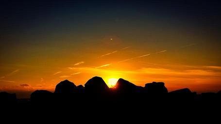 Keywords: sunset rock coast mood orange red black background image holiday