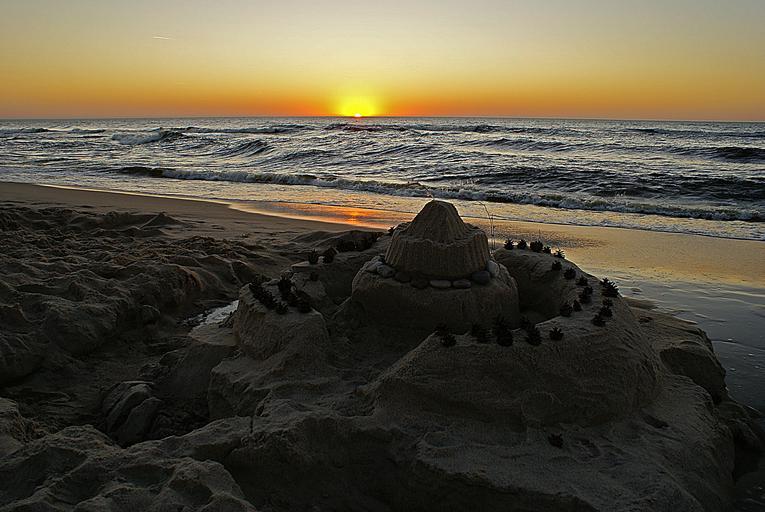 Keywords: sunset sea beach water twilight the darkness sand wet sand building castle the baltic sea polish sea shoreline orange sky evening nature artifacts