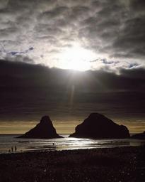 Keywords: sunset sea coast ocean sky rocks seascape shore coastline colorful clouds sun dusk evening landscape oregon silhouette beach water reflection usa