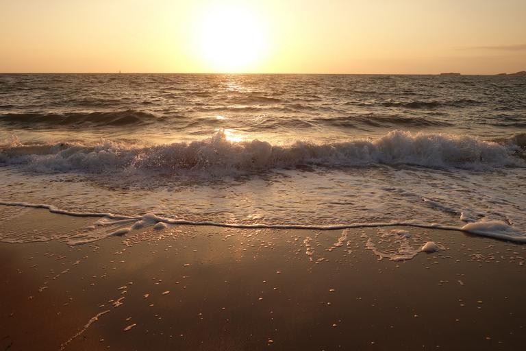 Keywords: sunset sea ocean calm sailboats brittany atlantic evening sandy beach side landscape sand