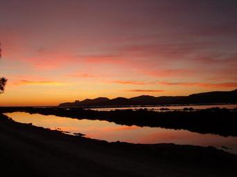 Keywords: sunset sea romantic distant beach water holiday twilight evening sky clouds abendstimmung afterglow sky landscape dusk mood evening red