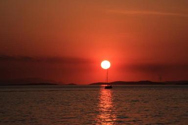 Keywords: sunset sea romantic evening sky afterglow abendstimmung sunlight boot sky mood dusk lichtspiel water sailing boat atmospheric evening sun twilight rest evening silhouette
