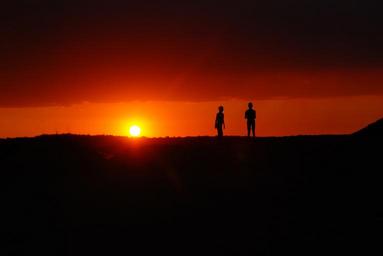 Keywords: sunset silhouettes twilight evening the sun mood red the backlight into the sun last light west people