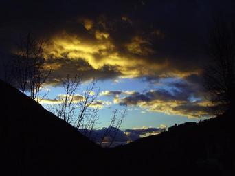Keywords: sunset sky clouds colors colorful vibrant bright trees foliage beautiful lovely peaceful serene calm