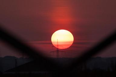 Keywords: sunset sky orange red power lines power poles current cable power line power supply light mast burn up solar energy energy
