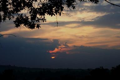 Keywords: sunset soft clouds pearly pinks whites sheen of pearl calm foliage sky