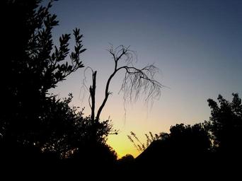 Keywords: sunset soft glow yellow pink trees silhouette sky blue