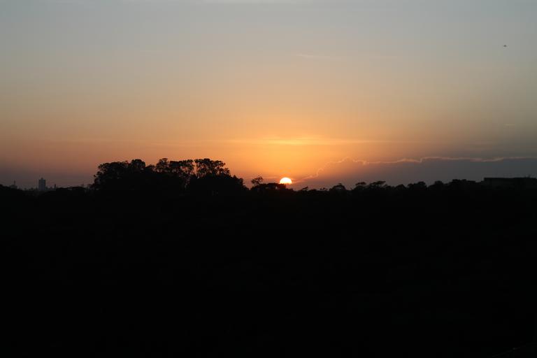 Keywords: sunset sol eventide horizon landscape against light rays of sunshine