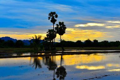 Keywords: sunset sugar palm silhouettes evening sun rise cornfield sun green view
