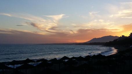 Keywords: sunset sun calm clouds beach mountains orange sky evening sky water lake sea holiday