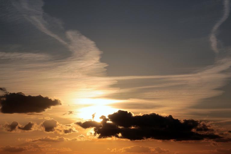 Keywords: sunset sun clouds dark clouds bright cloud contrail abendstimmung sky evening evening sky