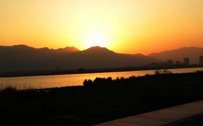 Keywords: sunset sun river mountain landscape